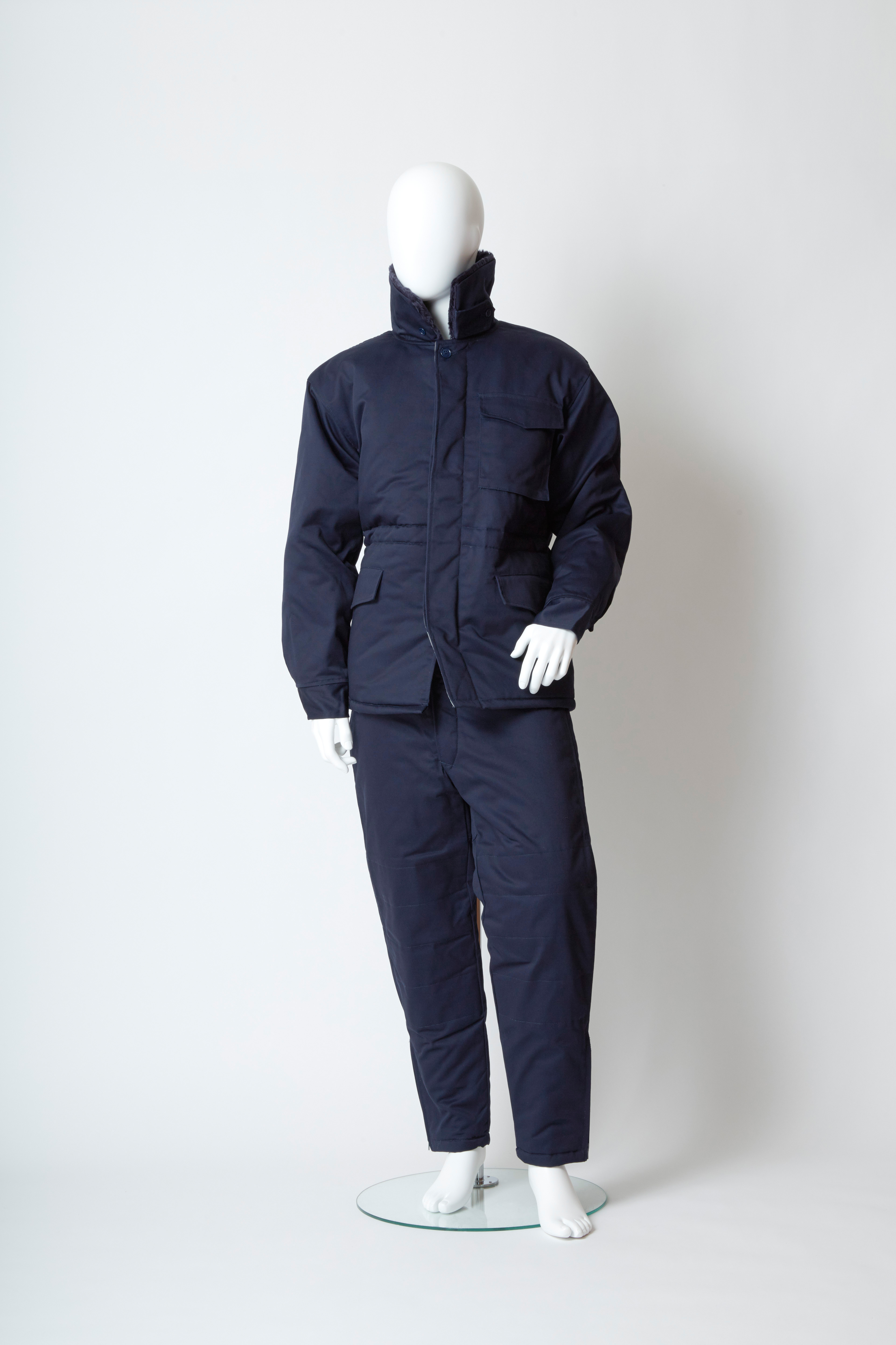 尚、写真のマネキンが着用している防寒服(ズボン)、防寒帽子、防寒手袋2本指、作業用防寒靴は別売の商品となります。